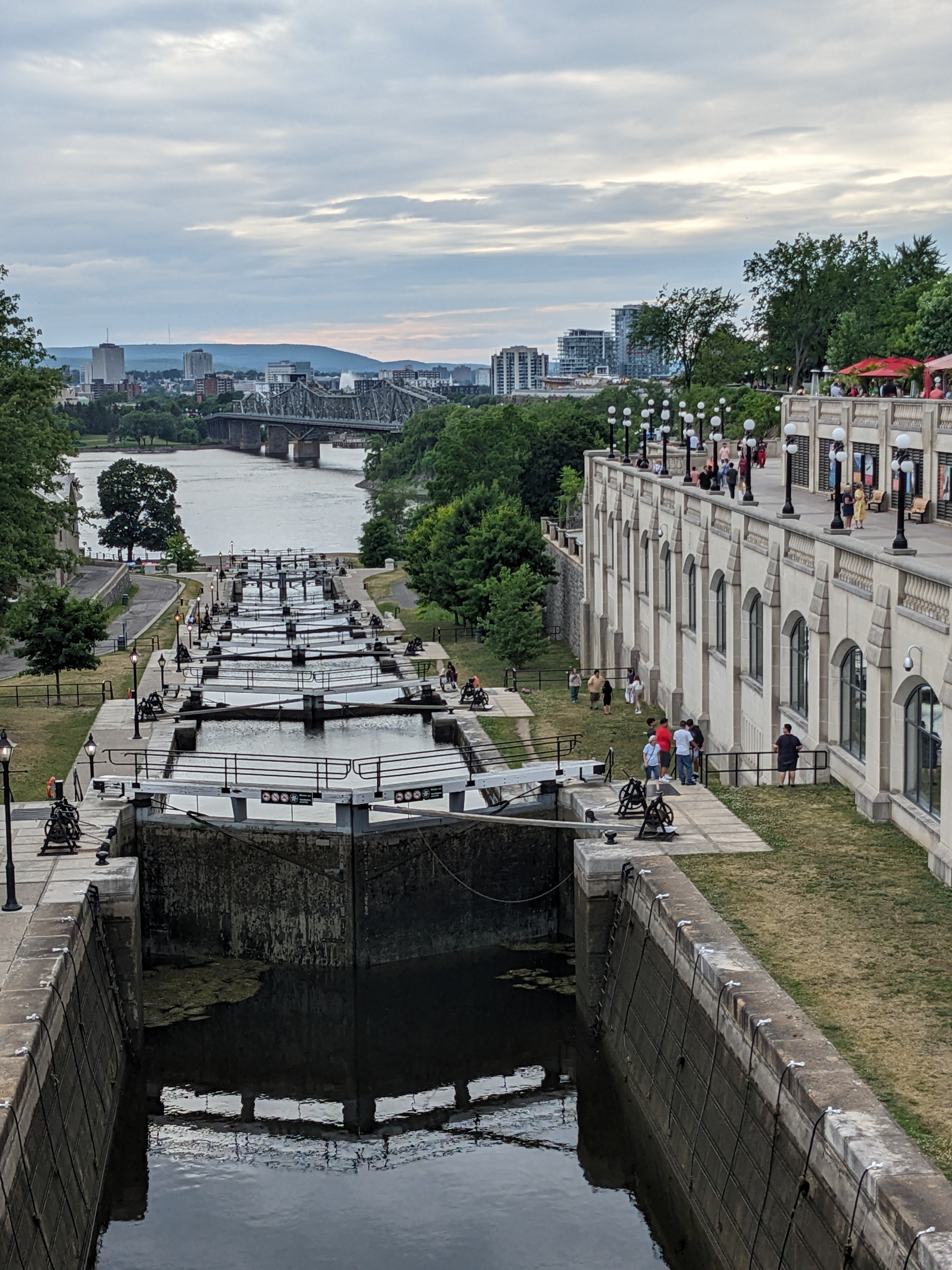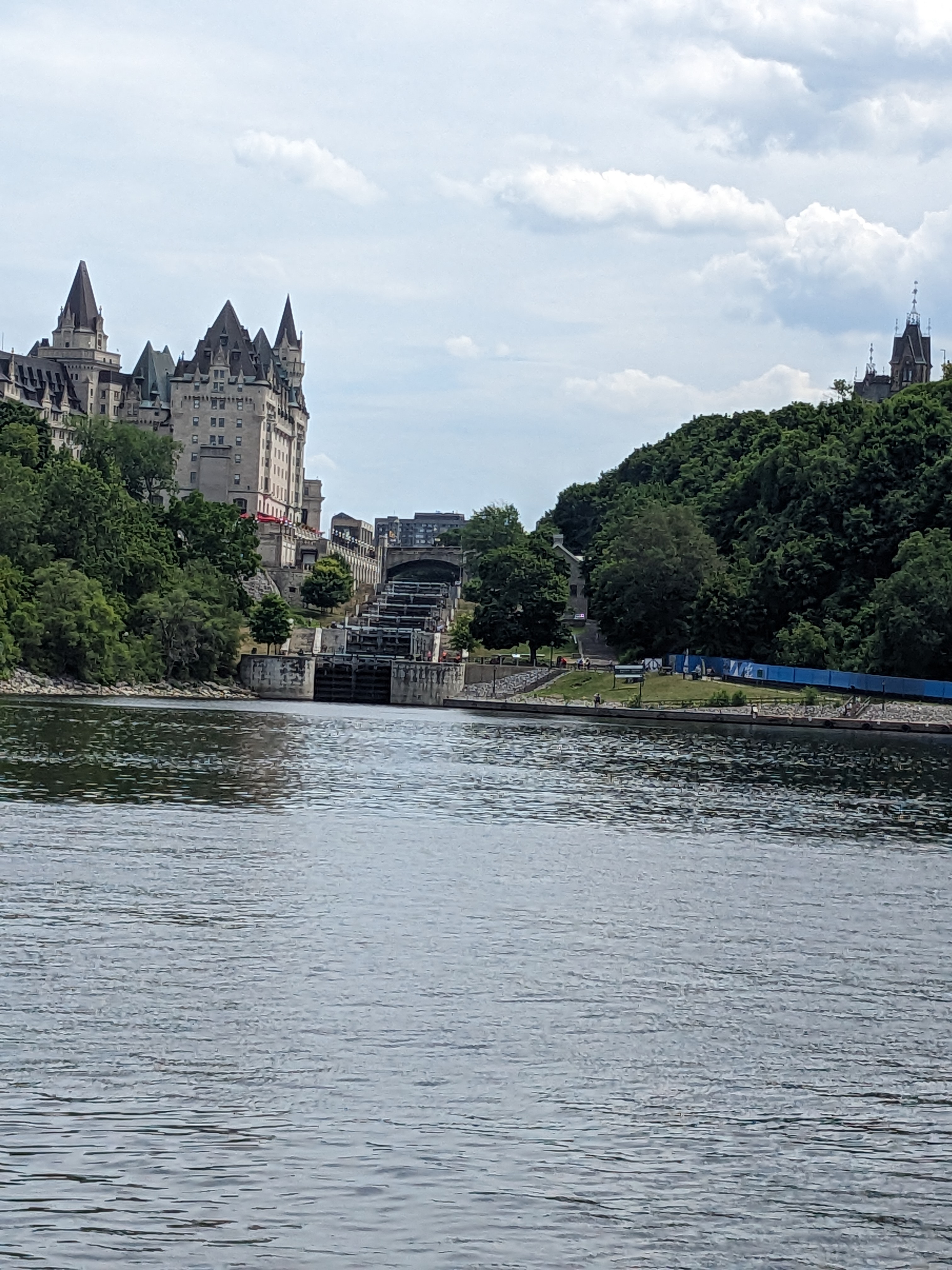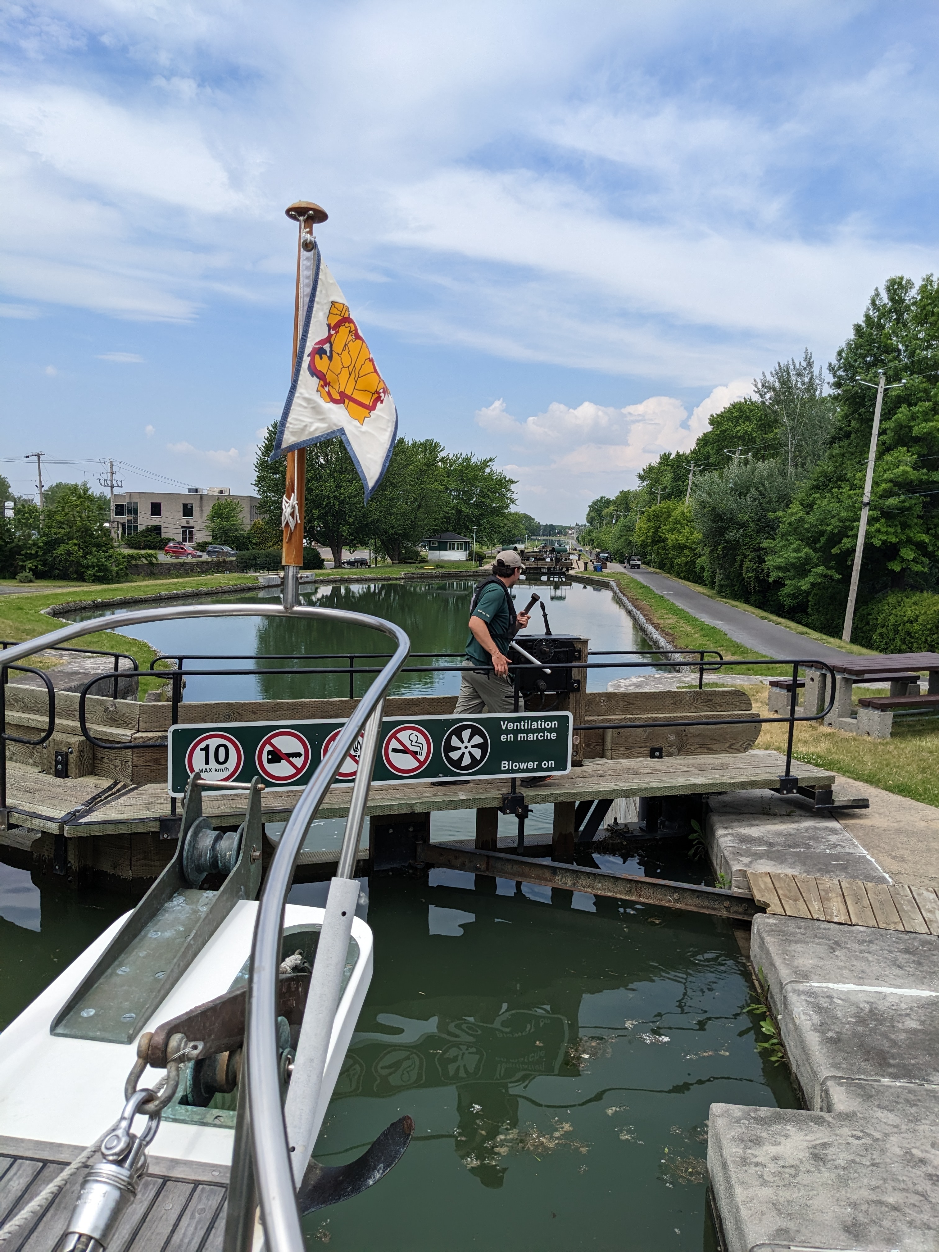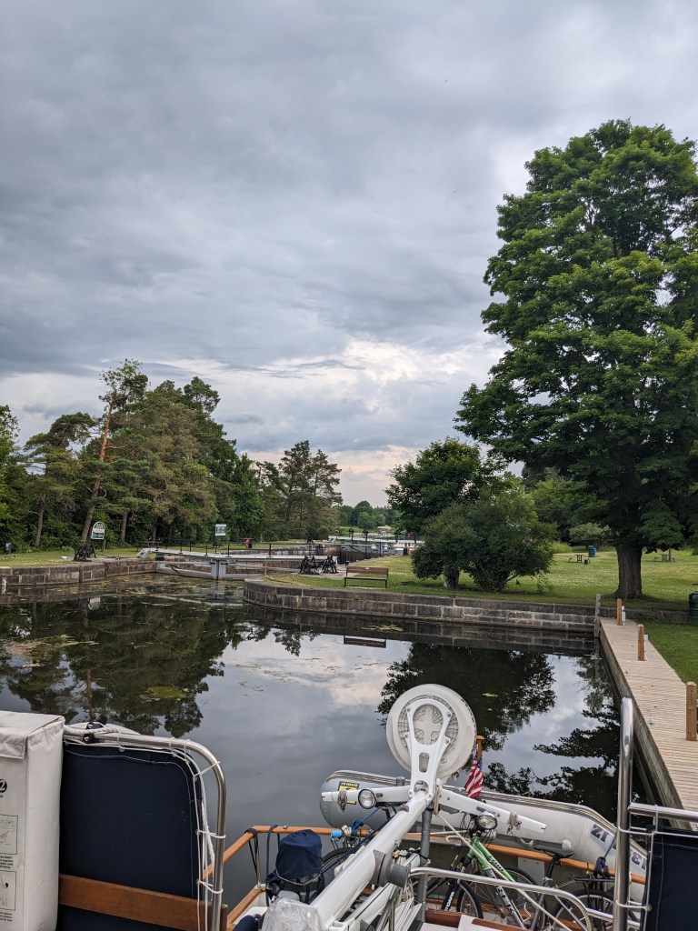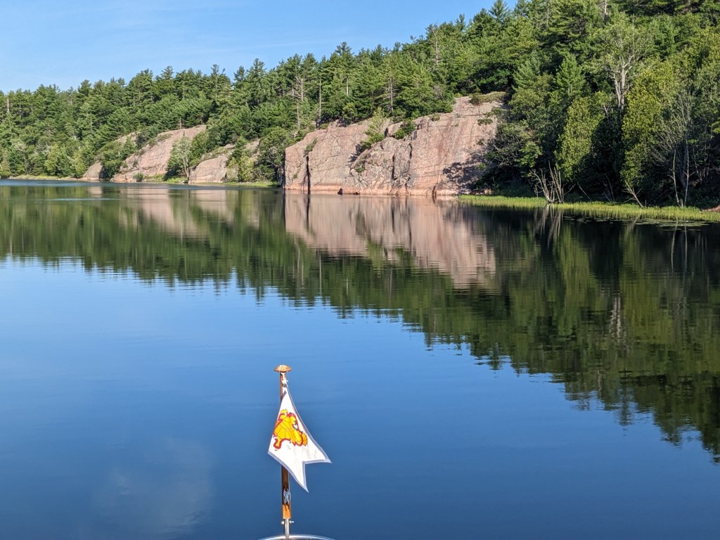 Parry Sound Public Dock was a fun stop where we had a great jerk chicken dinner, stopped by Trestle Brewing and made a grocery run by bike. But our Snug Harbor anchorage stands out among the best. Had a fabulous pan-fried walleye dinner (“pickerel” in Canadian lingo) at Gilly’s and received some sound, encouraging advice from several local residents about a tricky, twisty, rocky section of the small craft channel we would encounter the next day. The written descriptions of “Hang Dog Channel” had made for a restless night or two for Ned, but fortified by the words of an elderly, former Coast Guard captain we traversed the channel handily the following day.