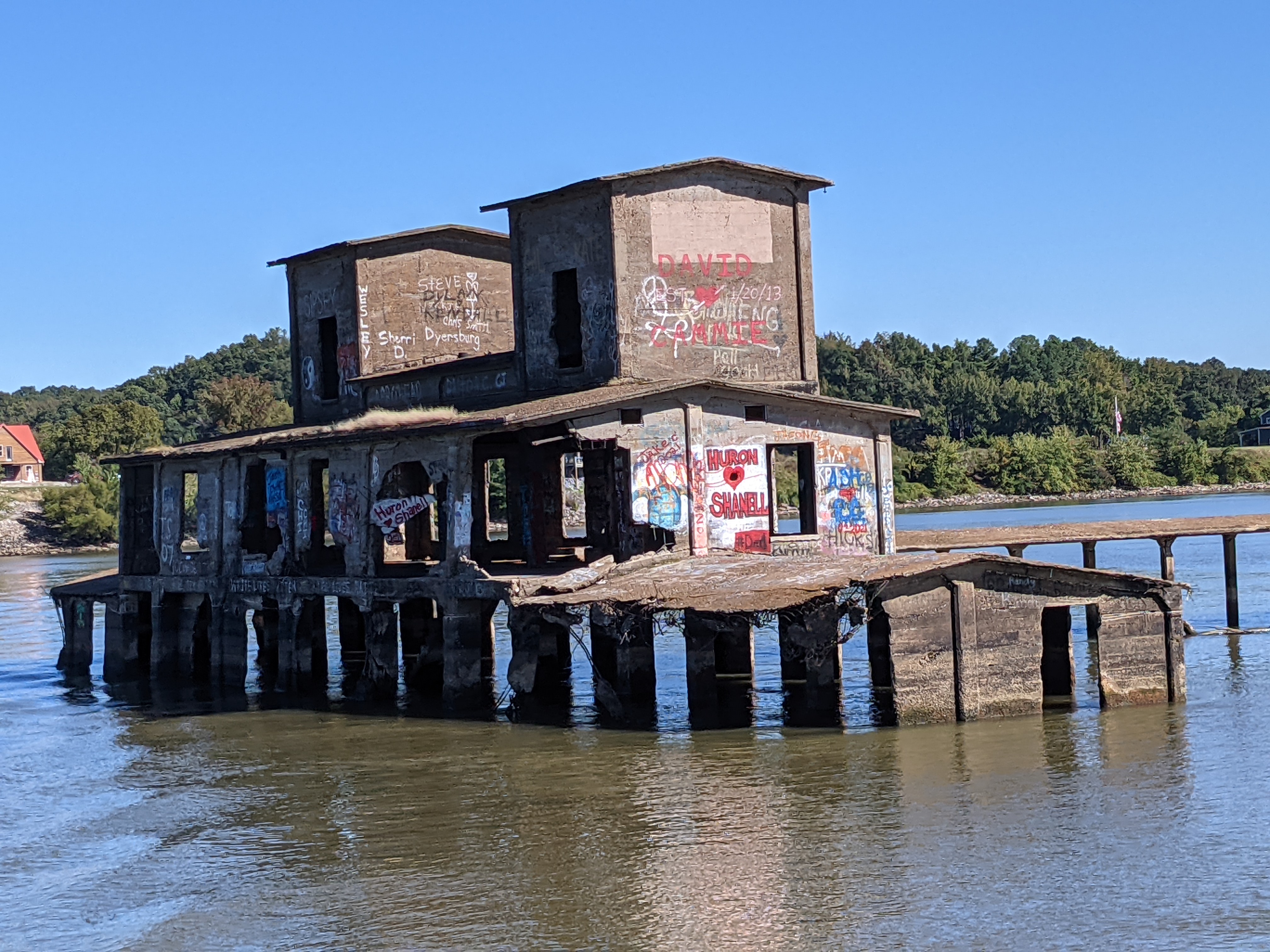 Old feedmill still standing out in Kentucky Lake.