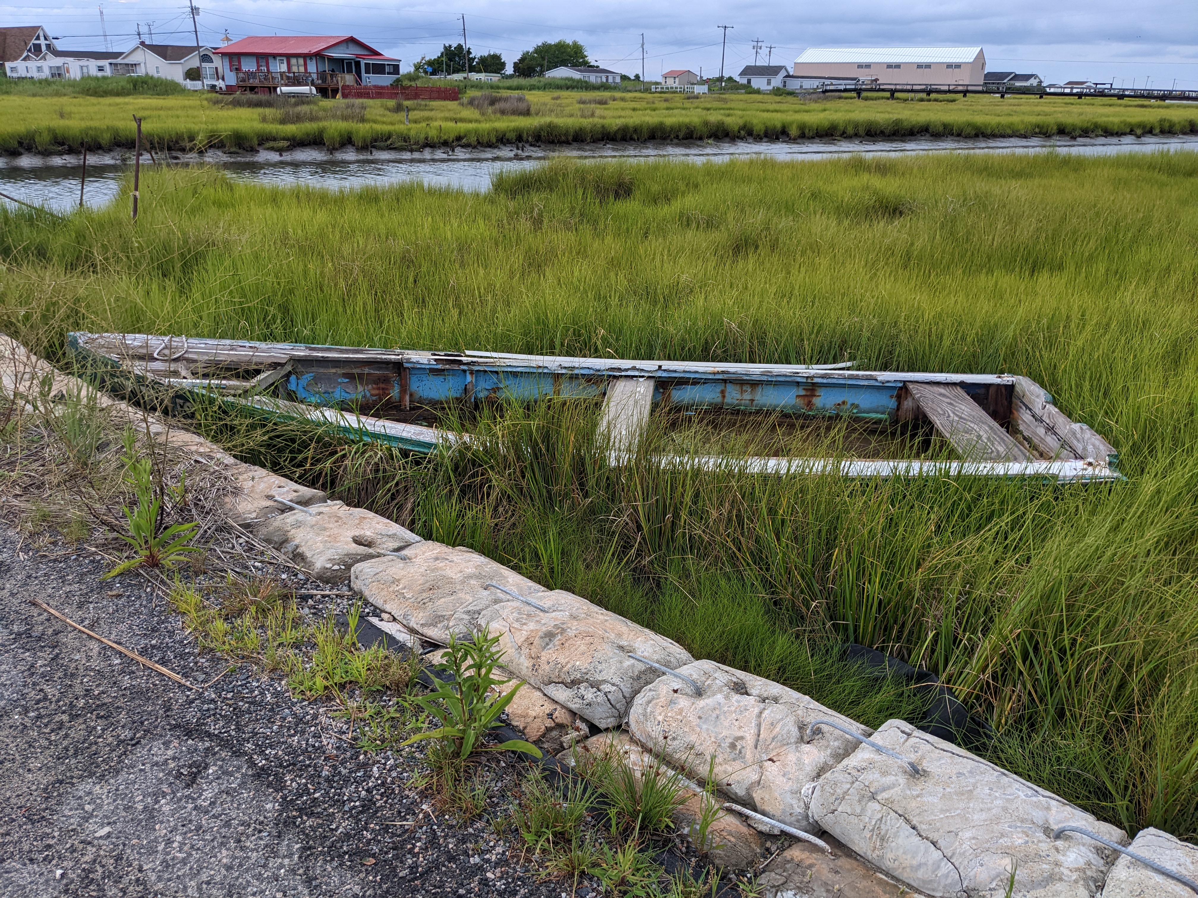 Next stop was Tangier Island ( less than 400 acres), located in the middle of the Bay, inhabitated by watermen and their families who have made their living harvesting crab, oysters and fish over the past 250+ years. It seems to be a tightly-knit working-class community proud of its heritage, but struggling in many ways, especially economically and because of rising seas. Many of the weather-beaten homes and fish/crab shanties lining the waterways that criss-cross the island are slowly being abandoned or put up for sale. Incoming tidewater is clearly visible under many of the homes and the Combined School (K-12) was raised 8 ft in 2008 to preserve the building which is still in use. Small cemeteries and individual gravesites occupy much of the remaining “high” ground (including residential front and back yards), as residents try to keep their deceased loved ones above water. Some sources say the island will have to be abandoned by 2050. We are glad we had an opportunity to visit this unique place.