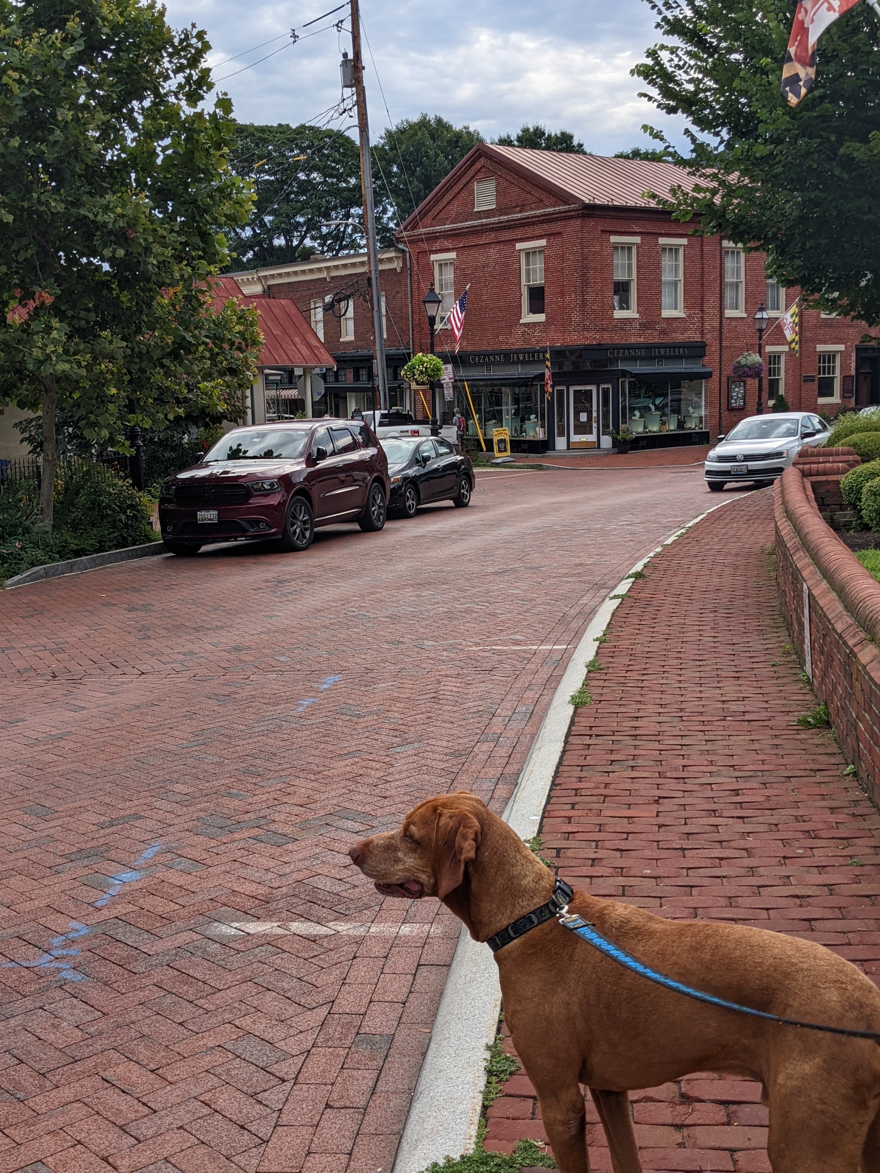 Next was Solomons MD, a small but vibrant community on Back Creek on the western shore of the Bay. Our assigned slip and the marina grounds were shaded by lovely, huge pines and hardwoods reminiscent of northern WI. Then north to Annapolis, home of the US Naval Academy and the sailing mecca of Chesapeake Bay. It’s an interesting, walkable city where we spent 2 days seeing the sights and stopping at bakeries, breweries, ice cream shops and restaurants along the way (not necessarily in that order). The brick-lined streets near the Statehouse and over to Prince George St and the Academy were very cool! The entire city waterfront is literally lined with marinas and boats (mostly sailing vessels) and the Bay is dotted with dozens of white sails on evenings and weekends.