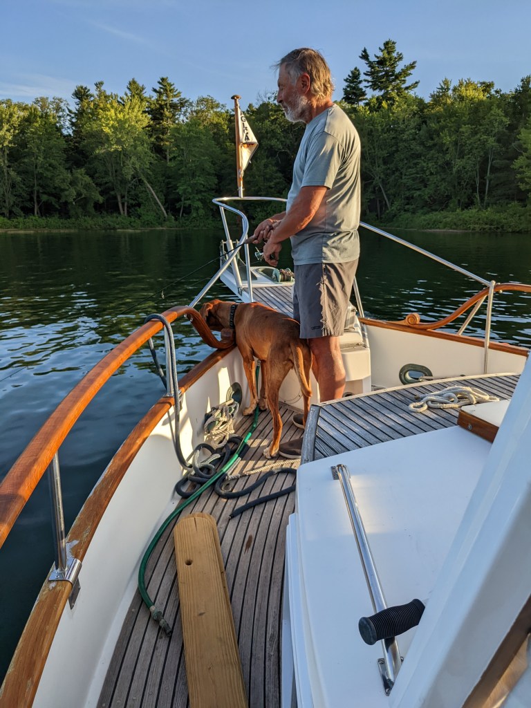 After two fun days in Westport and provisioning at the local grocer, we left to anchor out on the lake and fish a bit. We swam off the boat with Zeke, caught and released some nice perch and a huge bass and enjoyed the day and evening. We pulled the anchor in the morning and decided to head back south as the wind was expected to increase steadily over the next day or two and there were several large lakes and marshes to cross and many more locks to pass through heading north. We made it back to Kingston battling strong winds, but the worst were yet to come the following day!