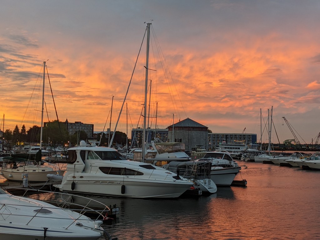 Gale force winds and rain tore the 2 solar panels off our bimini the following day. One landed on the dock and was retrieved while the other took off like a flying carpet and landed in 18-20 feet of water in the marina basin (as reported by a neighbor boat on our dock). We lowered the dinghy and fished for it the next morning with our super-duper magnets with no luck. So…..on to explore more of the Canadian coastline and the Thousand Islands area at the east end of Lake Ontario!!