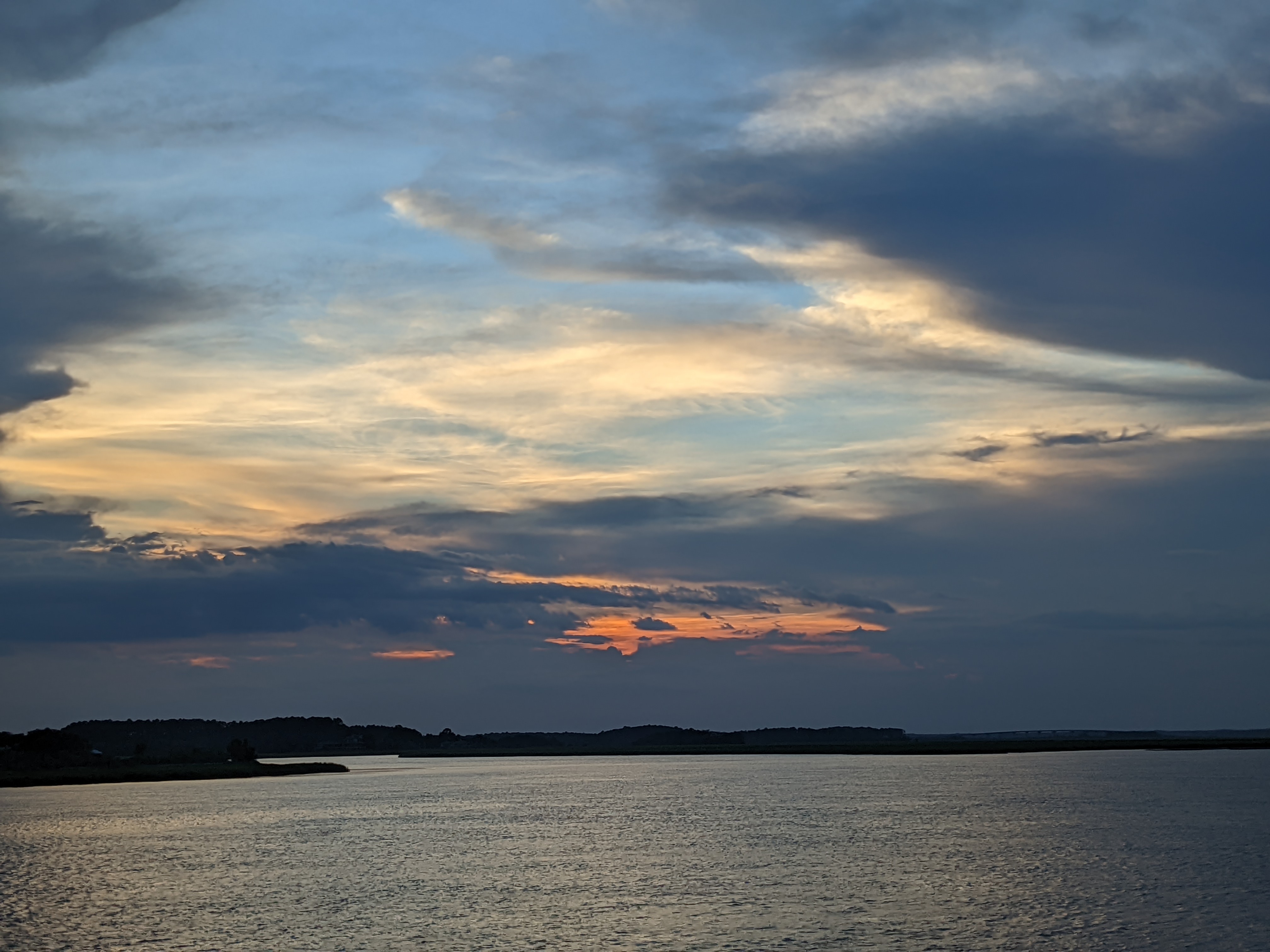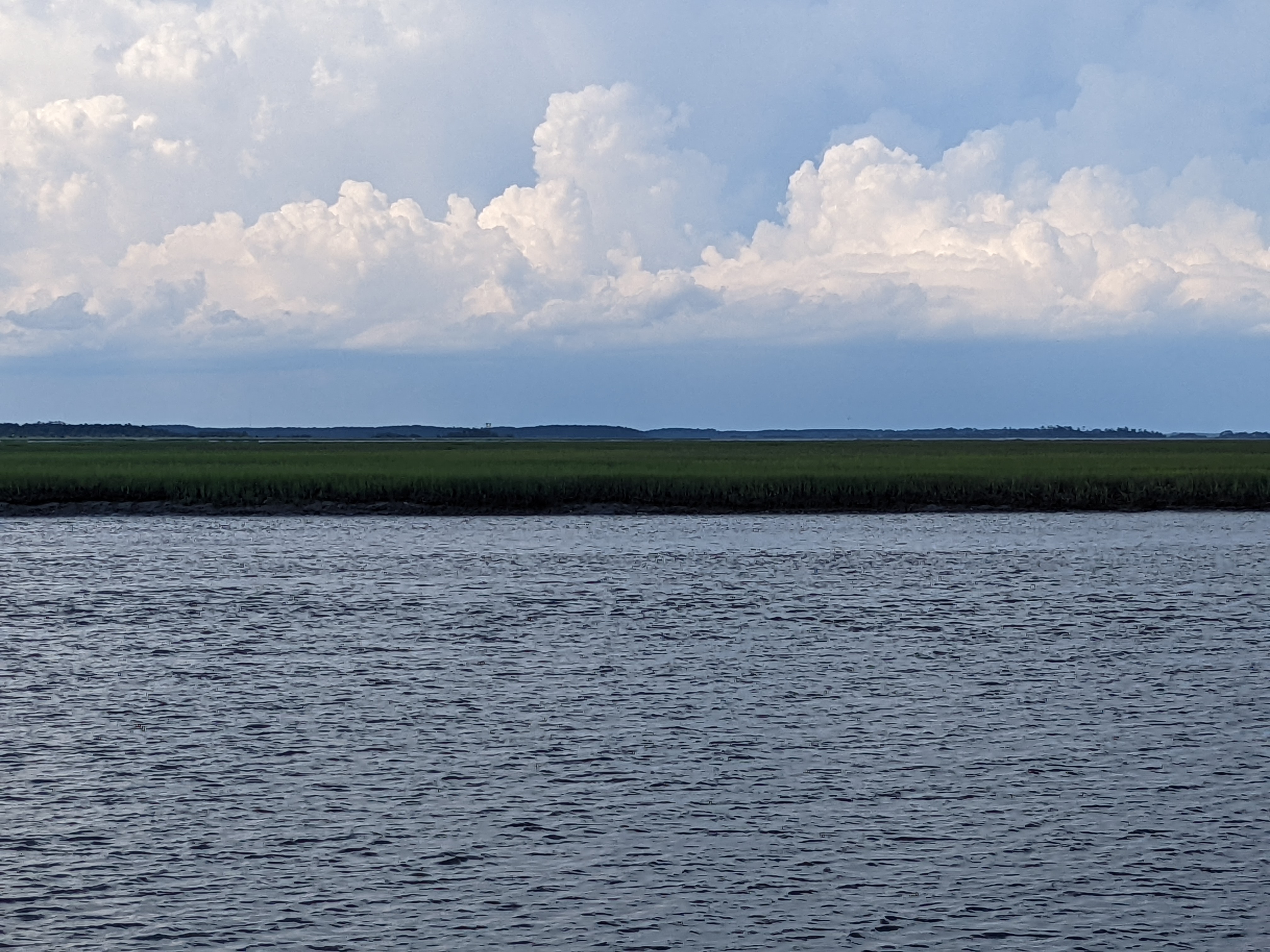 After 2 days of exploring both Portsmouth and Norfolk on foot with the aid of a very cool free ferry that crosses the river every 15 minutes, we started our journey up Chesapeake Bay. First stop Yorktown. Lots of history and a neat 3-masted schooner across the dock, but also lots of tourists and summer heat. So north we went the following day to the Deltaville Marina, a wonderful stop with an on-site oyster bar and crab hush puppies that are heavenly. Stayed 2 nights due to high winds on the Bay, but hope to head out to Tangier Island in the middle of the Bay tomorrow. We’ll be up early watching the weather. And hoping to spot more species of jellyfish, which are abundant in the Chesapeake!