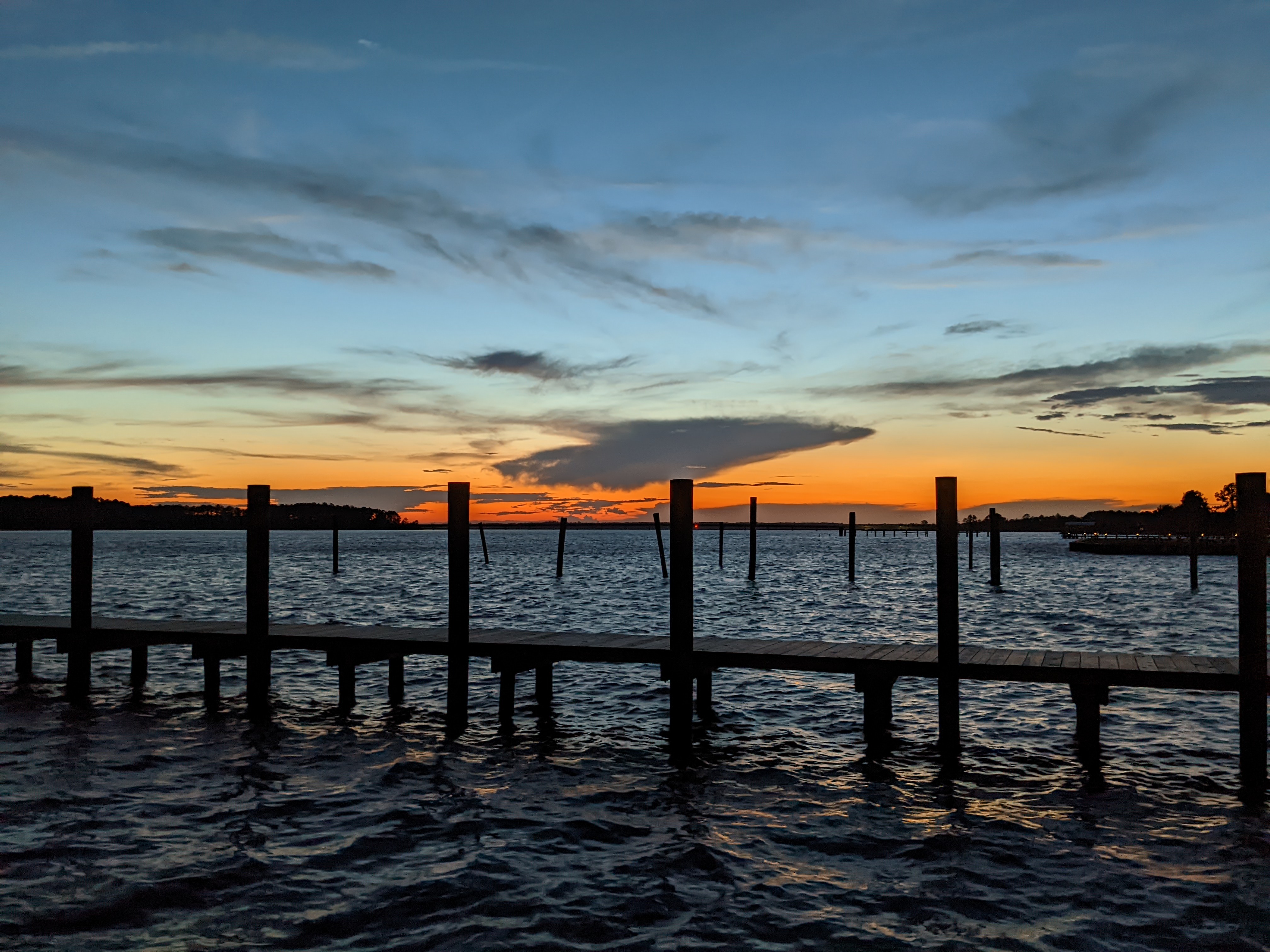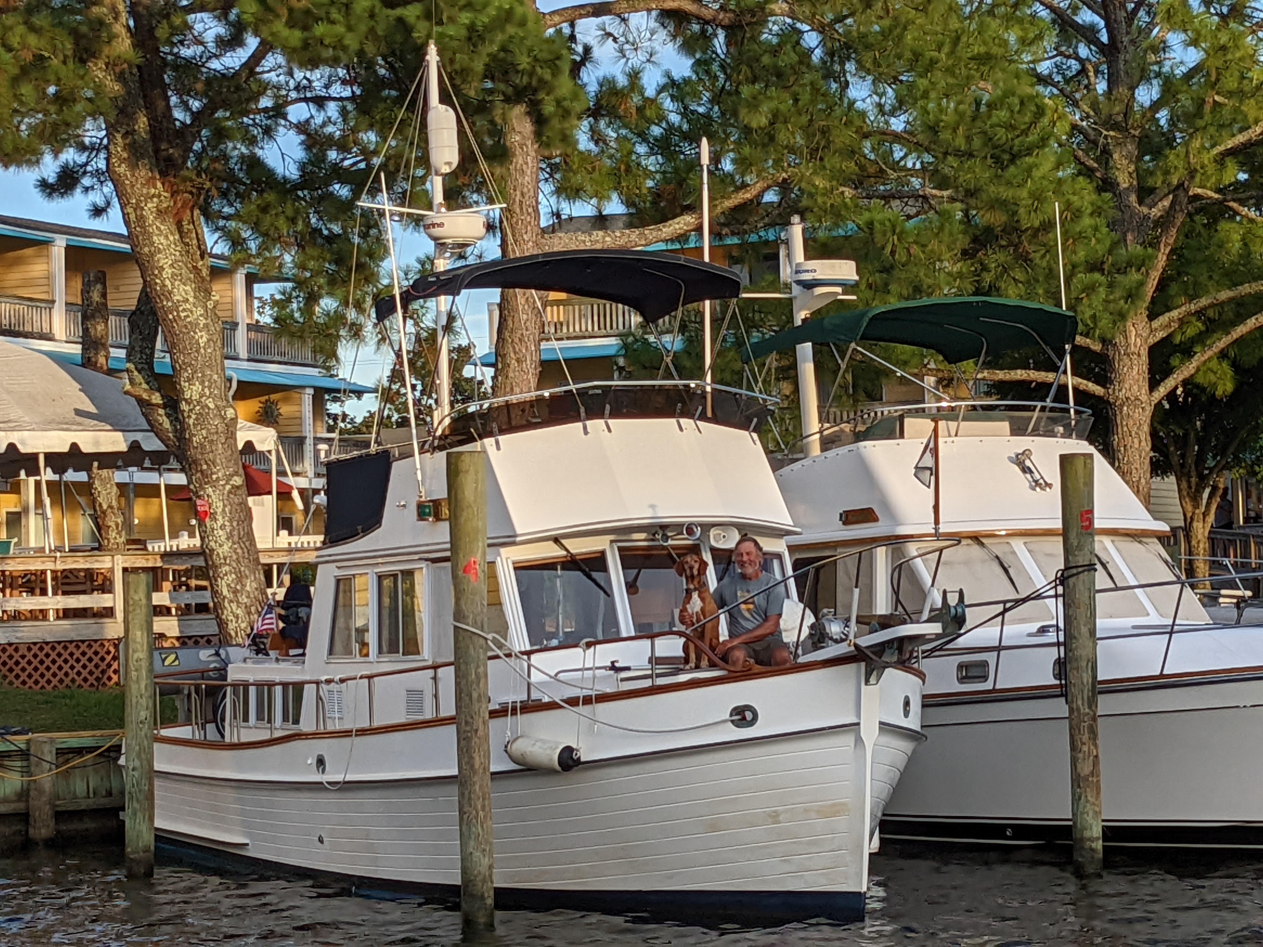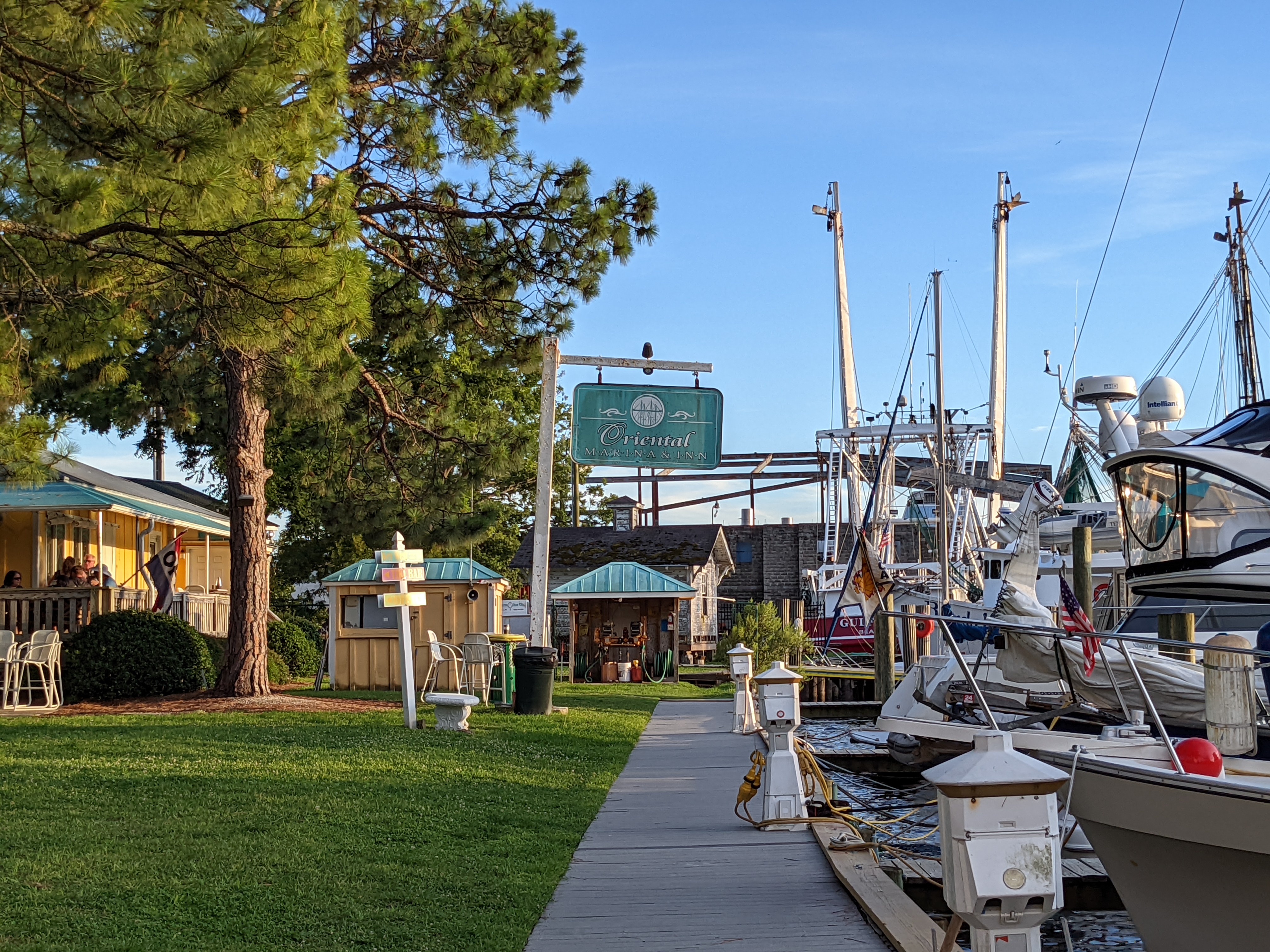 Oriental, the sailing capital of NC, was our next stop after Beaufort. A great small town with a pleasant waterfront park for watching sailboats on the bay, a friendly local brewery and one of the best marine provisioning stores we’ve seen anywhere, regardless of the surly clerk! Plus, Blackbeard, the pirate shrimp boat was docked just a few yards away.